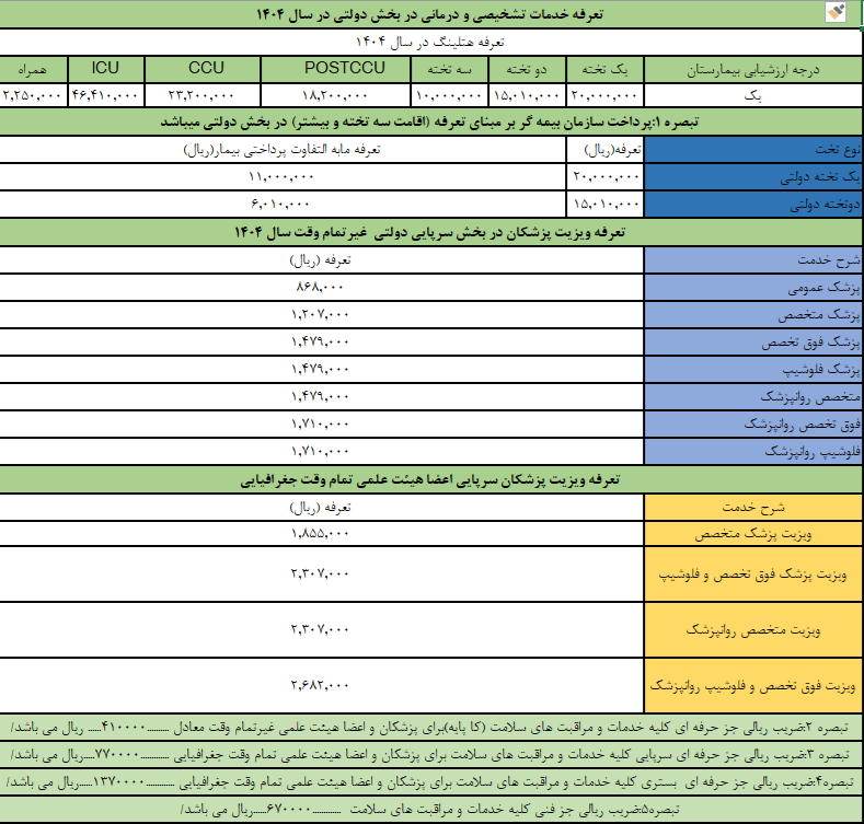 تعرفه خدمات تشخیصی و درمانی در بخش دولتی در سال 1404