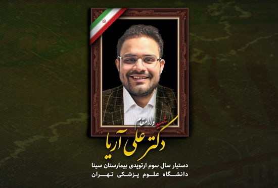 پیام تسلیت رئیس بیمارستان سینا در پی شهادت دکتر علی آریا، دستیار گروه ارتوپدی بیمارستان سینا