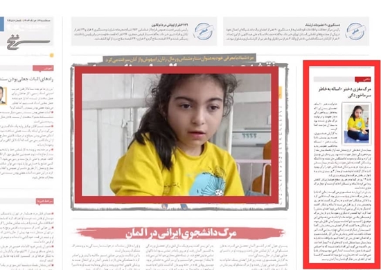 روزنامه همشهری دوشنبه 13 مرداد ماه 1404 در ستون حوادث خود مطلبی با عنوان مرگ مغزی دختری 10 ساله به علت سرماخوردگی و اهدای اعضای بدن او را به چاپ رساند.