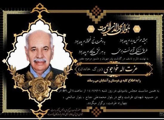 در نهایت تاسف و تاثر درگذشت پدر ارجمندتان را تسلیت عرض نموده و از خداوند متعال برای آن مرحوم علودرجات الهی و برای شما عزیزان و سایر بازماندگان صبری عظیم مسئلت دارم.