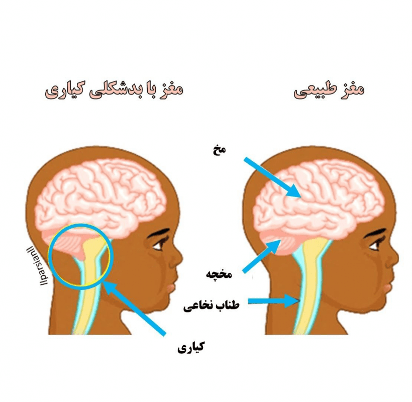 ﺳﻨﺪرم ﻛﻴﺎرى ﻳﻚ ﻧﻮع اﺧﺘﻼل در ﺳﺎﺧﺘﺎر ﻣﺨﭽﻪ (قسمتی از ﻣـﻐـﺰ ﻛﻪ در ﺣﻔﻆ ﺗﻌﺎدل ﻣﻮﺛﺮ اﺳﺖ) است. ﺑﻪ اﻳﻦ ﺻﻮرت ﻛﻪ ﭘـﺎﻳـﻴـﻦ ﺗﺮﻳﻦ ﻗﺴﻤﺖ ﻣﺨﭽﻪ از ﺳﻮراخ ﻗﺴﻤﺖ ﭘﺎﻳﻴﻦ ﺟﻤﺠـﻤـﻪ( ﻓـﻮراﻣـﻦ ﻣﮕﻨﻮم) ﺑﻴﺮون زده ﻣﻲ ﺷﻮد. اﻳﻦ ﻣﺸﻜﻞ ﺑﺮﻋﻤﻠﻜﺮد ﻣﺨﭽـﻪ، ﺳـﺎﻗـﻪ ﻣﻐﺰ، اﻋﺼﺎب ﻣﺨﭽﻪ ایی و ﻧﺨﺎع ﺗﺎﺛﻴﺮ ﮔﺬاﺷﺘﻪ و ﻫﻤﭽﻨﻴﻦ ﺟﺮﻳﺎن ﻣﺎﻳﻊ ﻣﻐﺰى،ﻧﺨﺎعی را ﻧﻴﺰ ﻣﺴﺪود میﺷﻮد.